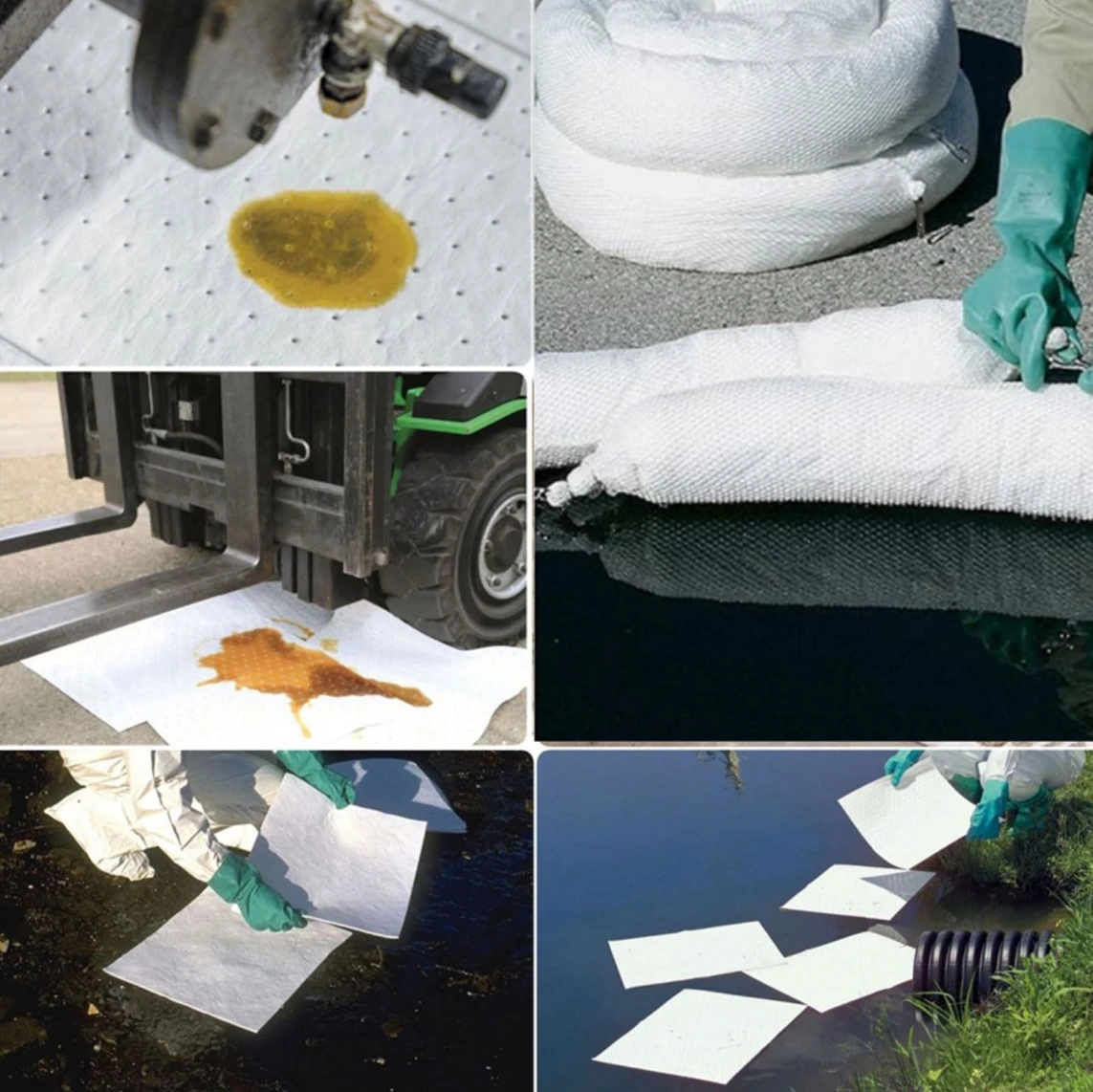 Được thiết kế đặc biệt để hấp phụ dầu đồng thời đẩy lùi nước, đảm bảo làm sạch vết dầu tràn mà không hấp phụ nước.
